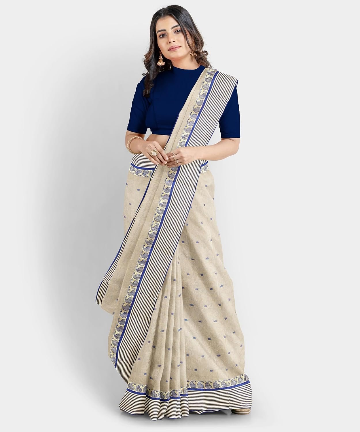 Women’s Traditional Bengal Tant Pure Cotton Tant Saree Without Blouse Piece Colour white