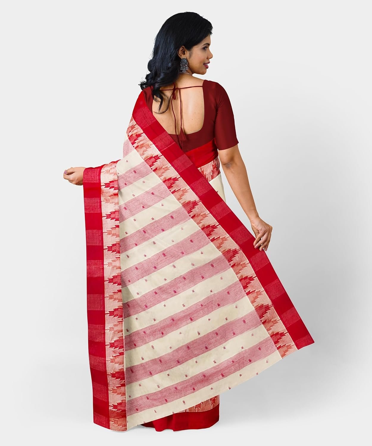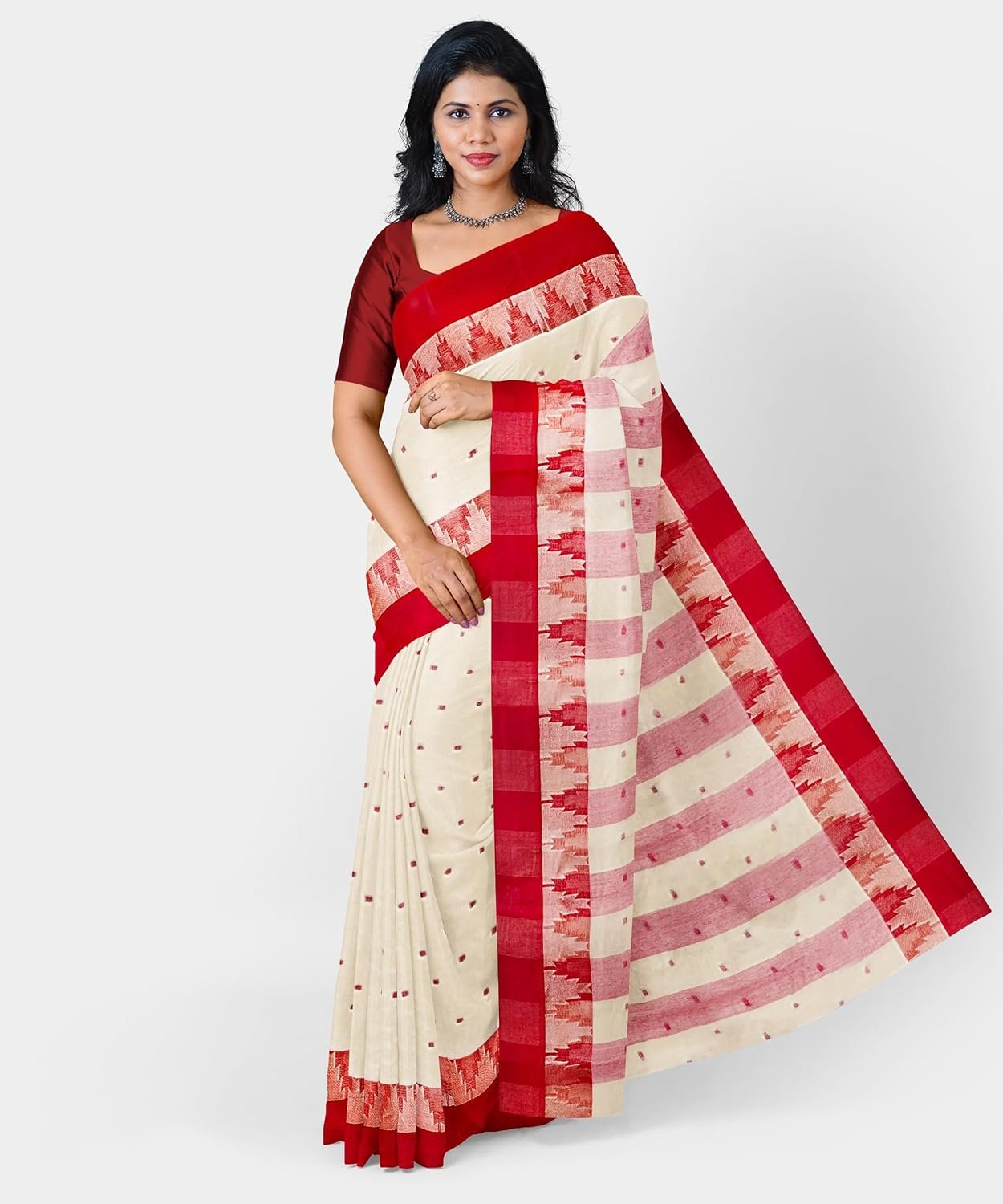 Women’s Traditional Bengal Tant Pure Cotton Tant Saree Without Blouse Piece Color Red