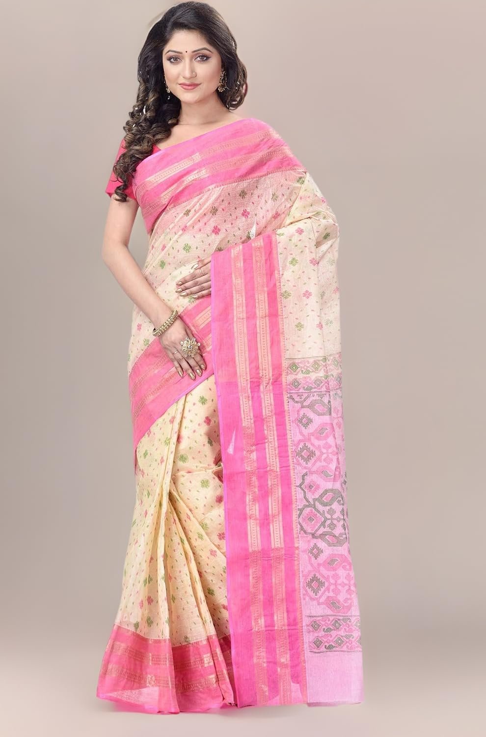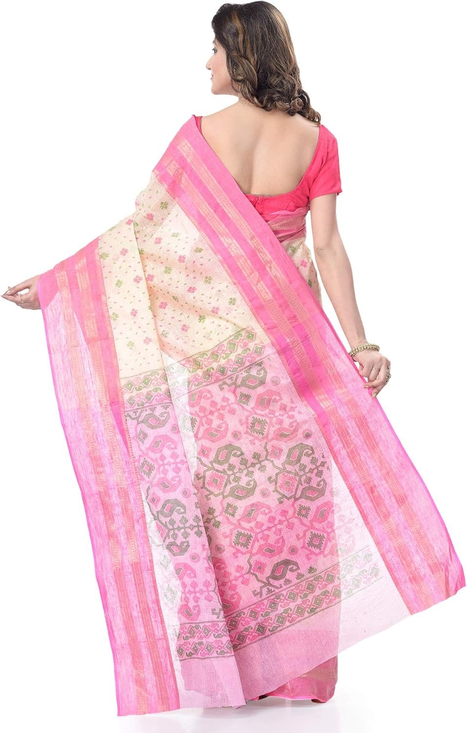 Women's Traditional Bengal Tant Pure Cotton Tant Saree Without Blouse Piece Color PinkWomen’s Traditional Bengal Tant Pure Cotton Tant Saree Without Blouse Piece Color Pink