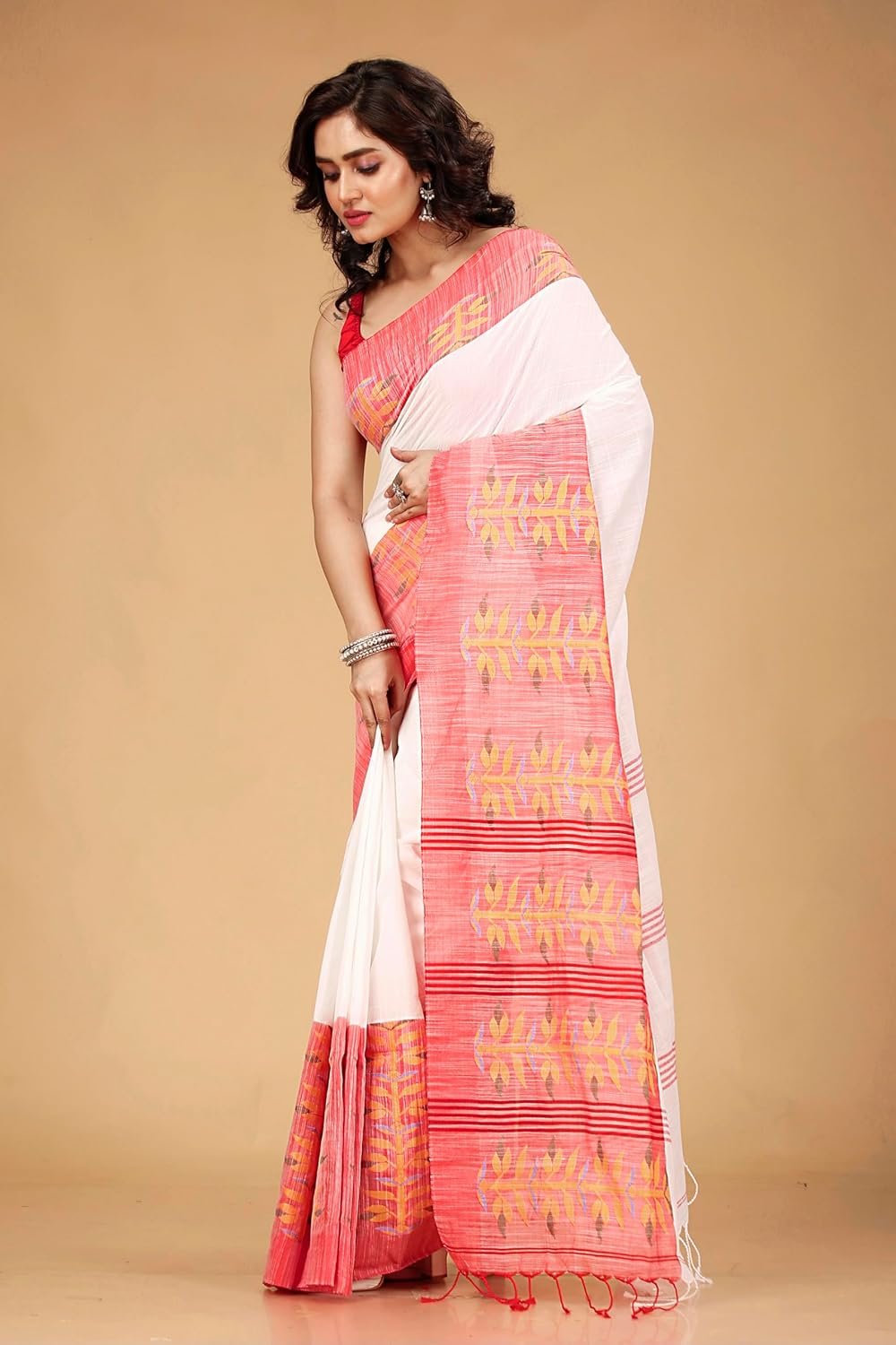 Women's Traditional Bengal Tant Pure Cotton Tant Saree Without Blouse Piece Color