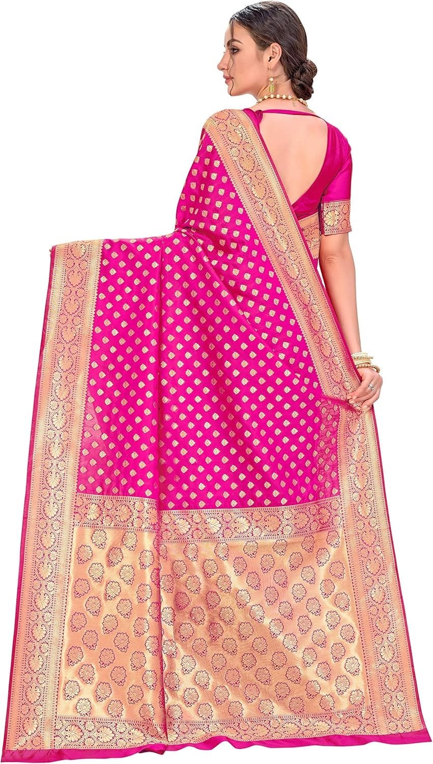 Women’s Banarasi Silk Saree With Blouse Piece colour pink and golden