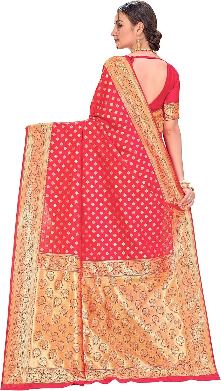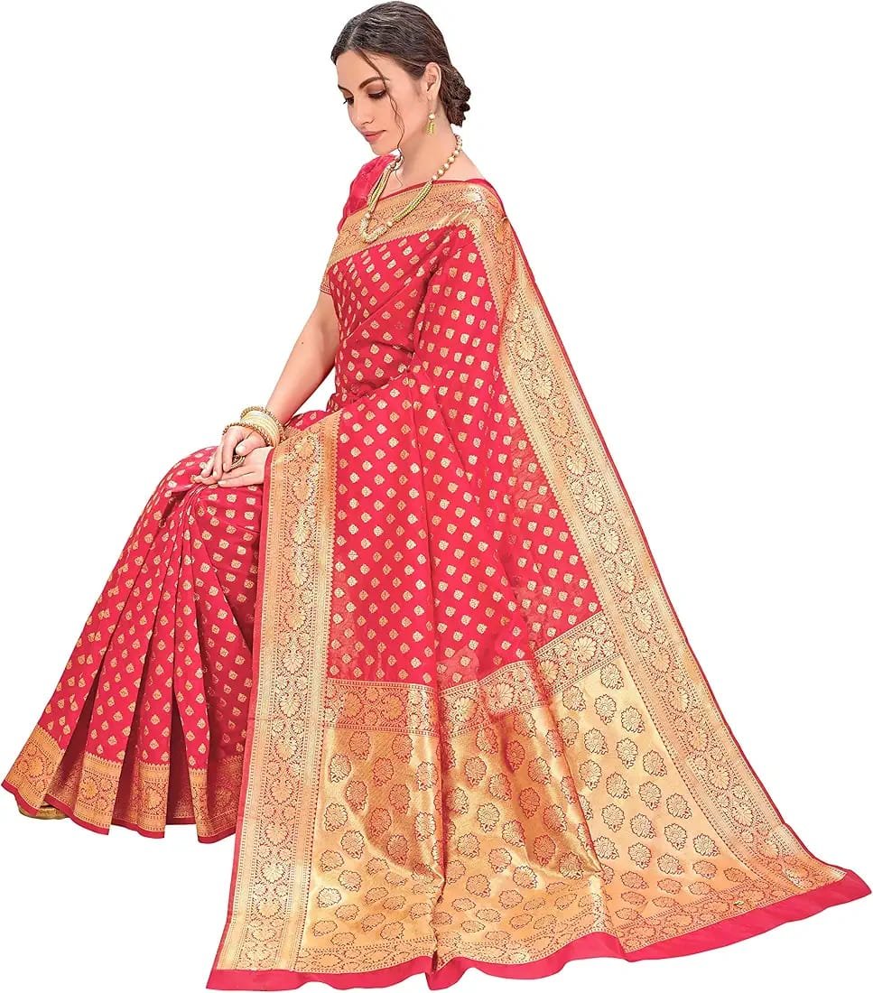 Women’s Banarasi Silk Saree With Blouse Piece colour red with golden