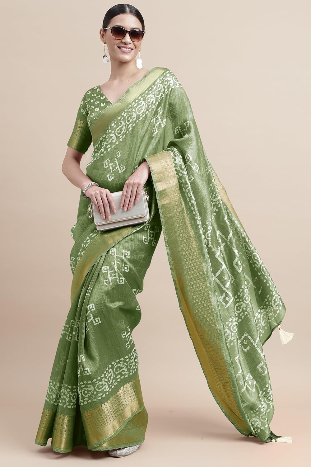 Women’s Cotton Silk Blend Block Printed Saree with Blouse Piece colour green