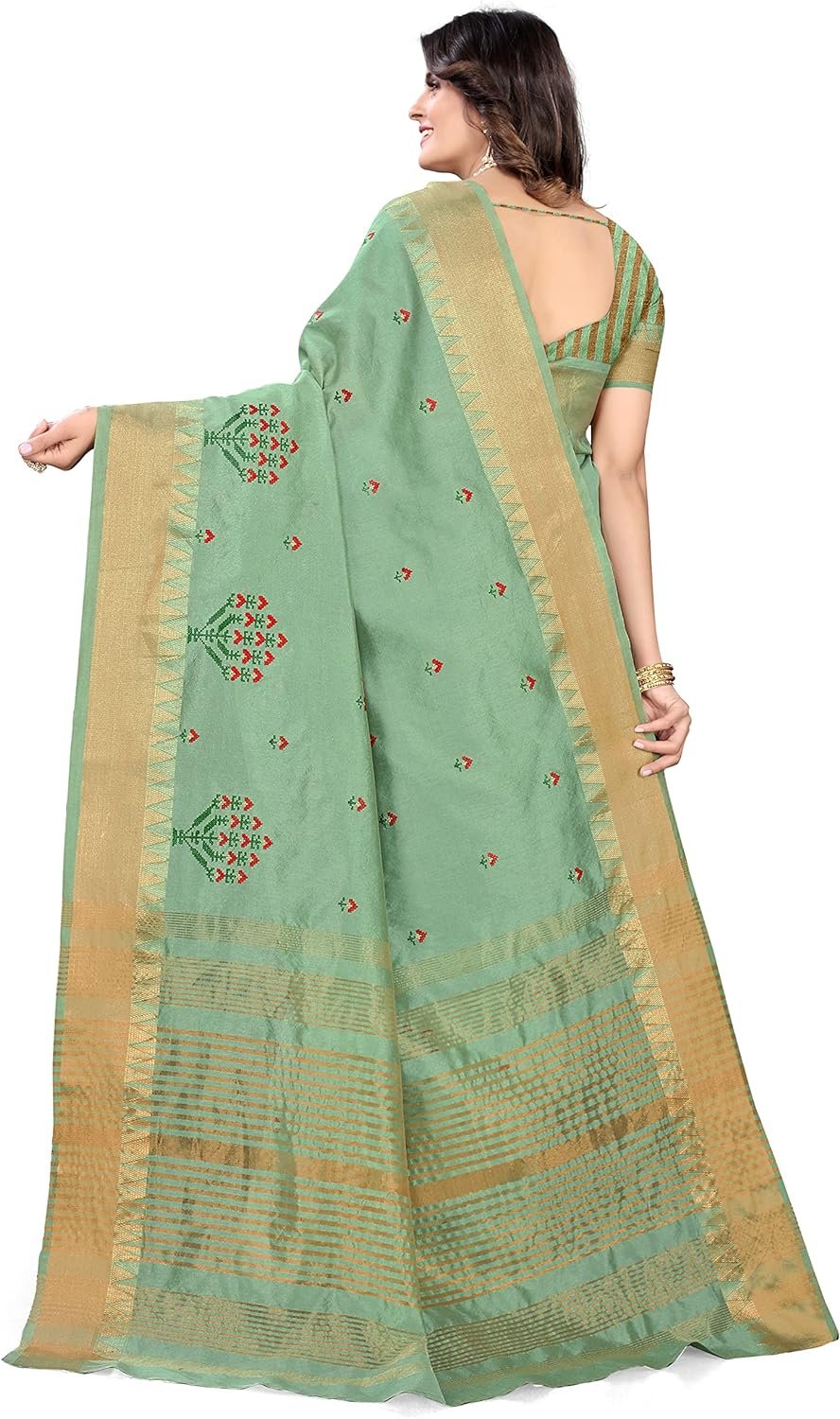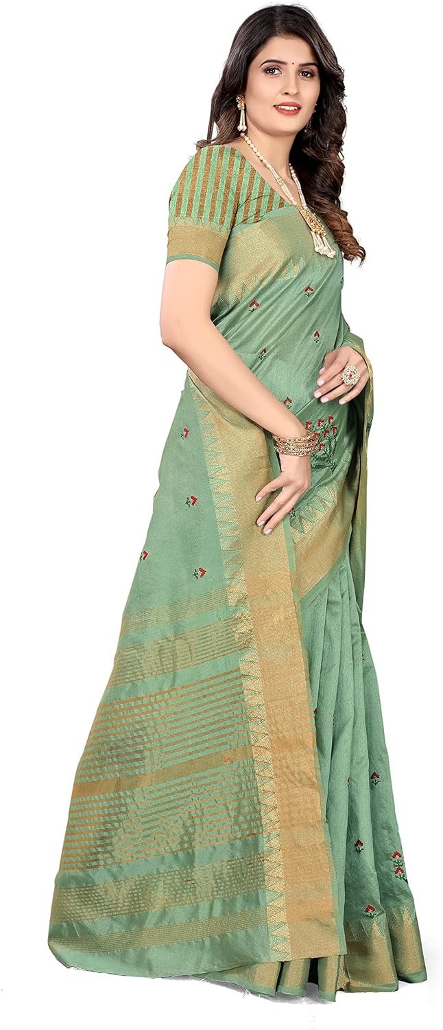 Women’s Cotton Silk Blend Block Printed Saree with Blouse Piece colour light green