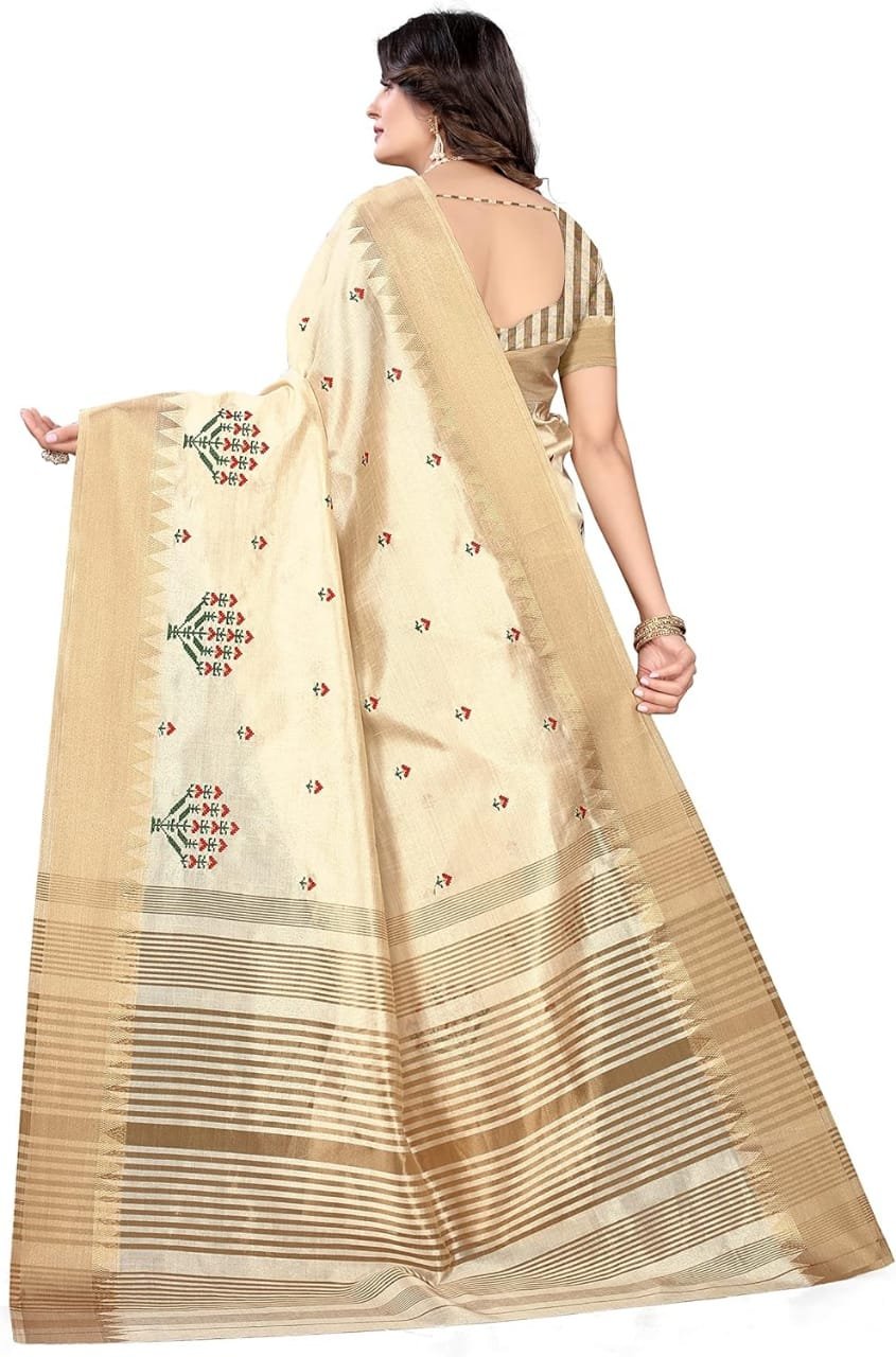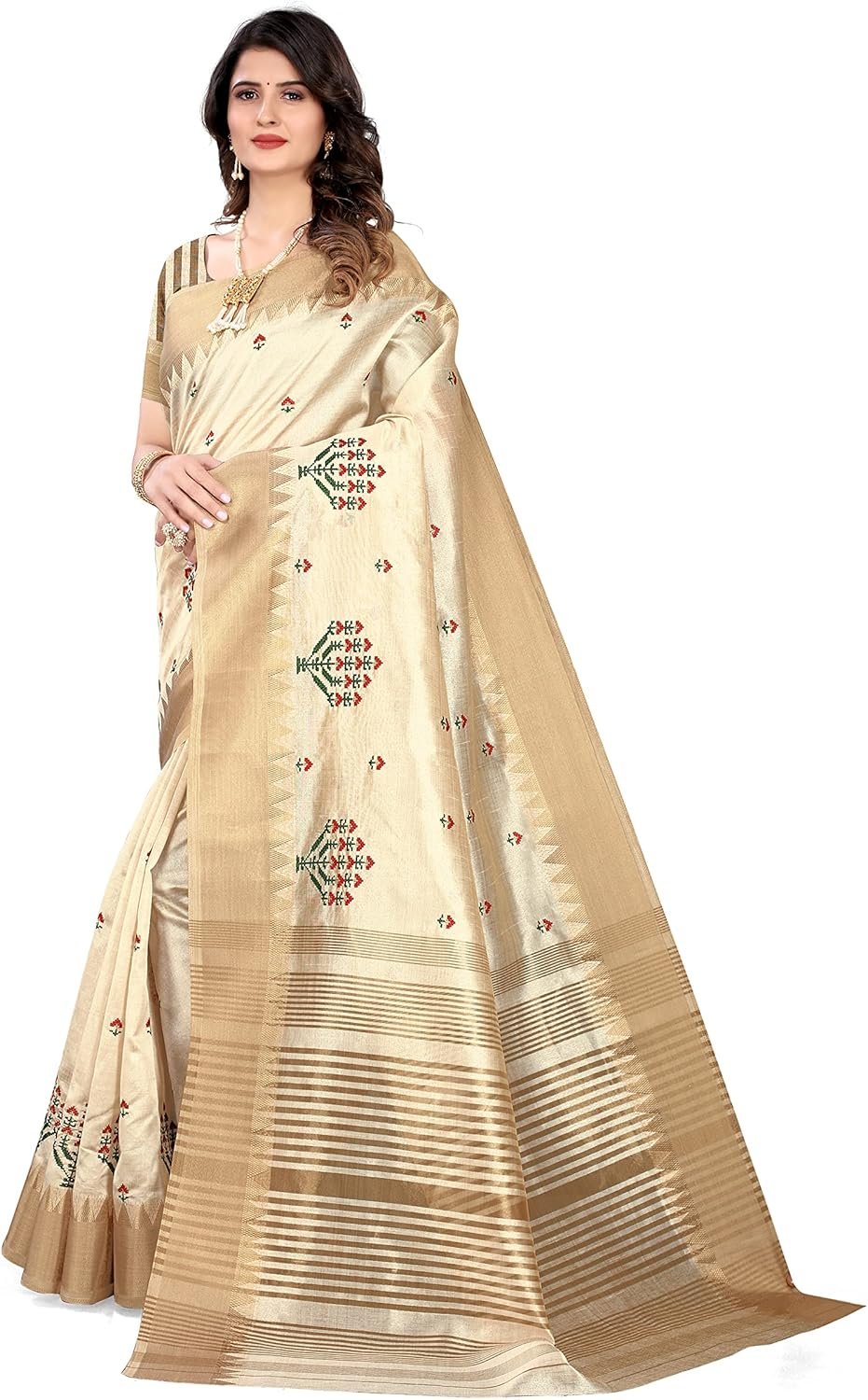 Women’s Cotton Silk Blend Block Printed Saree with Blouse Piece colour golden
