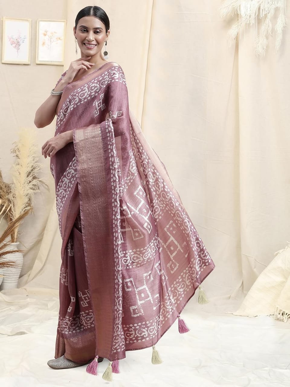 Women's Cotton Silk Blend Block Printed Saree with Blouse Piece colour dusty pinkWomen’s Cotton Silk Blend Block Printed Saree with Blouse Piece colour dusty pink