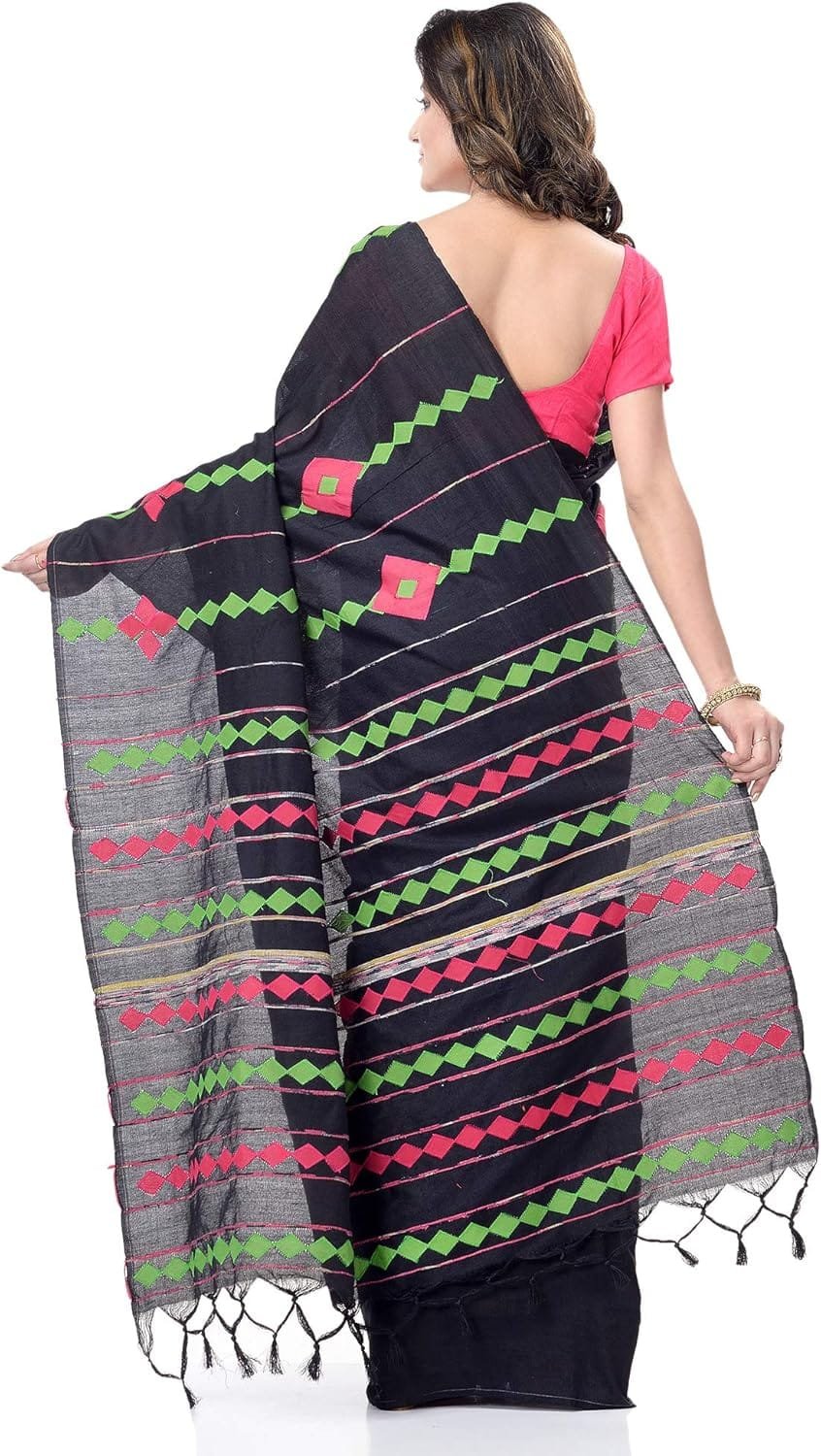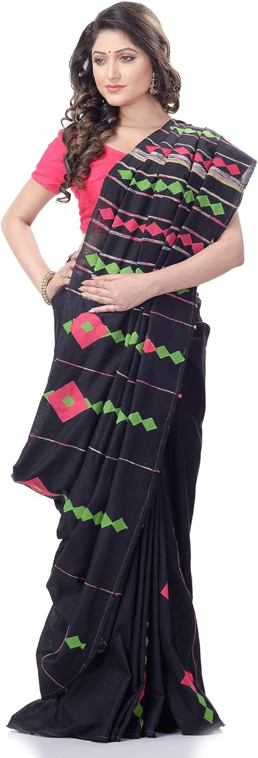 Women’s Dhakai Jamdani Bengal Pure Cotton Handloom Saree without Blouse Piece colour black