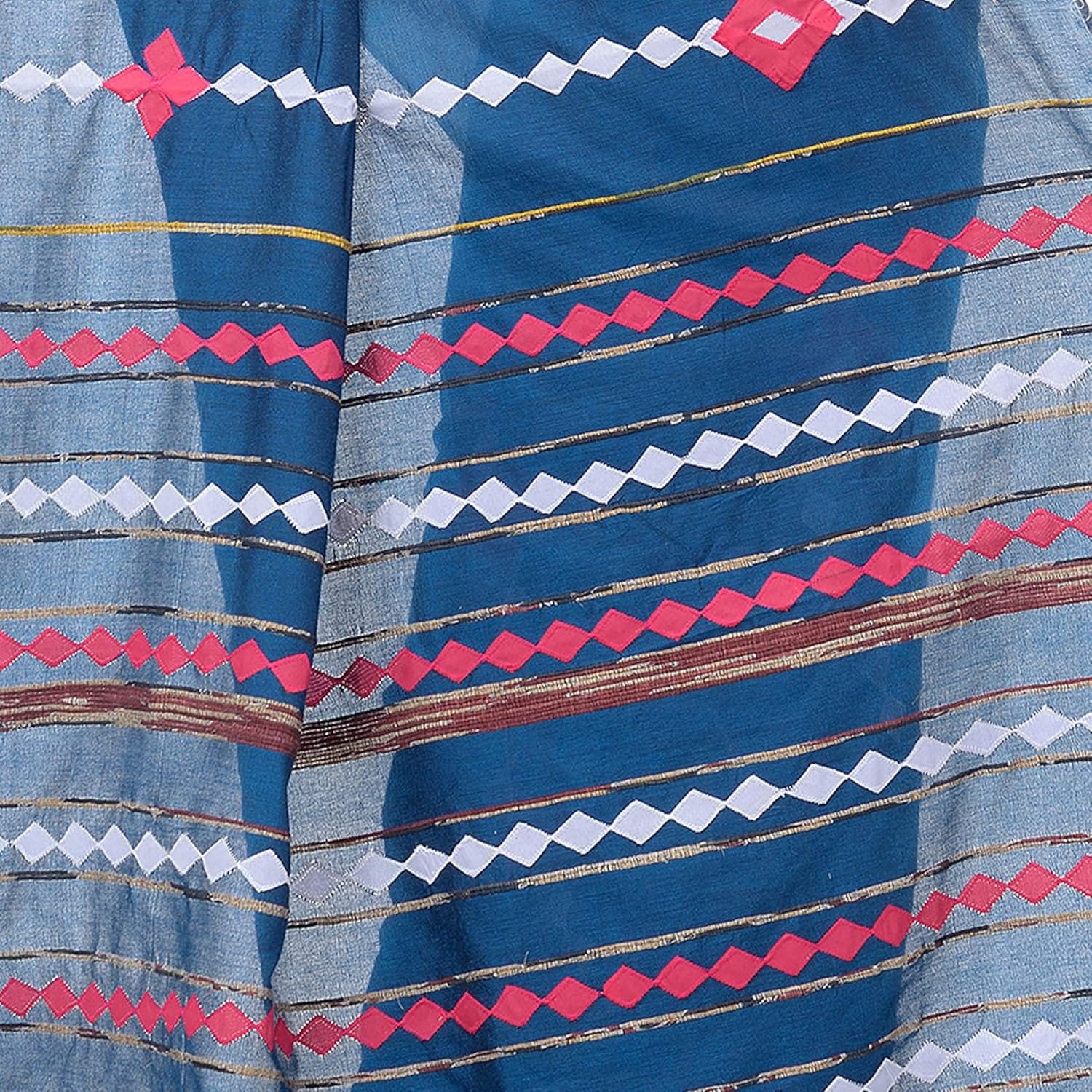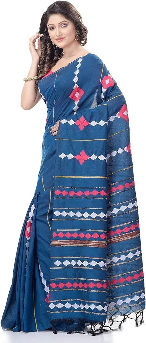 Women’s Dhakai Jamdani Bengal Pure Cotton Handloom Saree without Blouse Piece colour Prussian blue